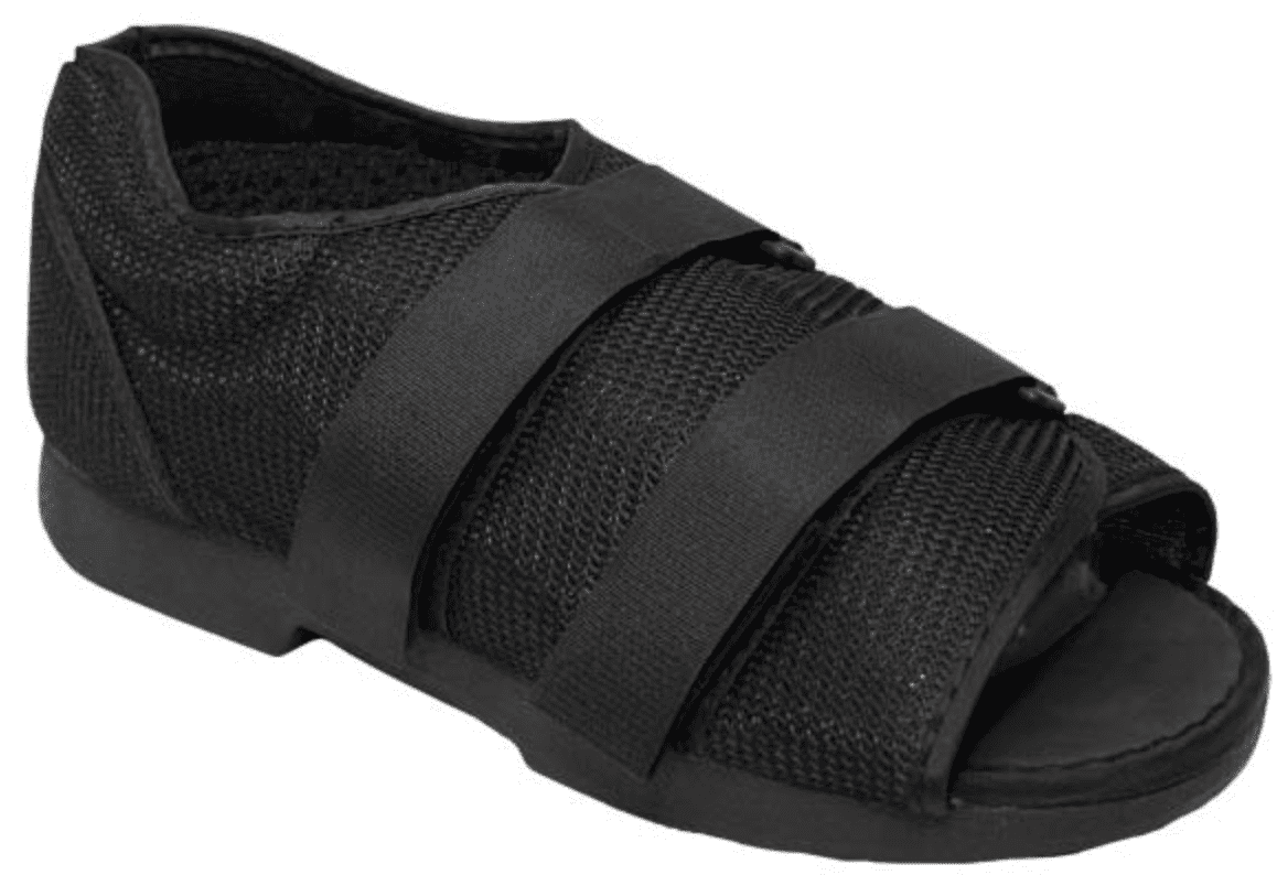 The Classic Post-Op Shoe offers medial and lateral stability and can be worn on either foot. It boasts a semi-rigid outsole that decreases flexure and offers stability. Its upper is constructed of breathable nylon mesh. The open-toe design reduces friction on the toes and the D-ring closure ensures equal compression while allowing for adjustments to fit thick dressings and edema.