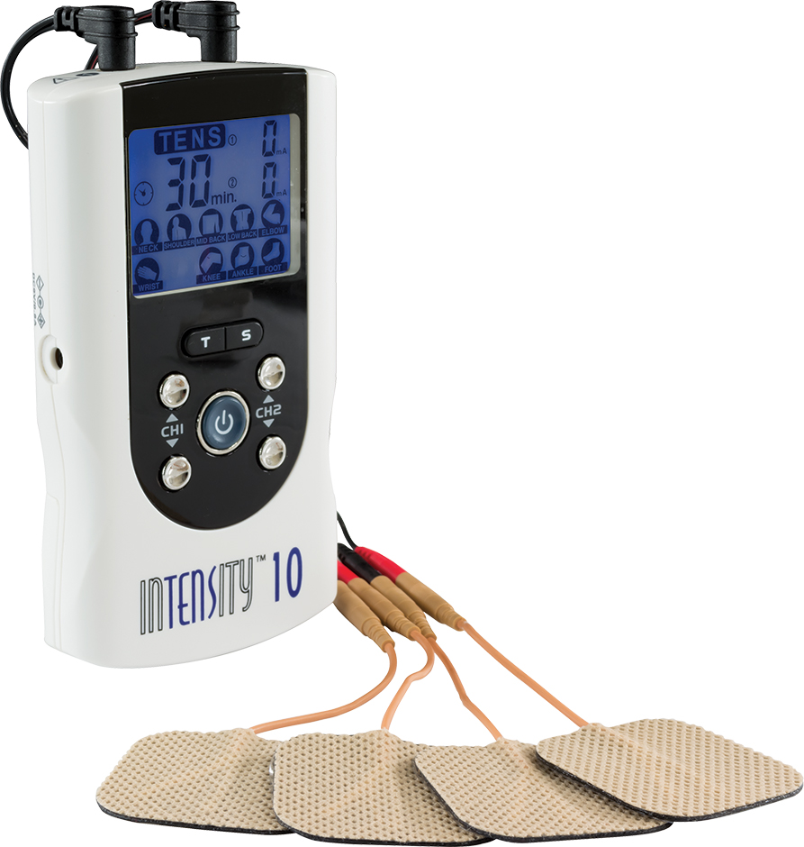The InTENSity 10 Digital TENS allows patients to select from ten pre-set body icons for targeted therapy, making it the easiest and most effective TENS device available. It’s comes with 4 self-adhesive reusable electrodes and lead wires, 9-Volt battery, instruction manual and a carrying case. With the press of two buttons the easy-to-use device is ready to operate effectively based on the area of the body that is being treated. Comes complete with AC adapter for effective therapy on the go.