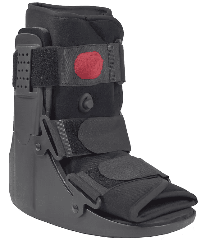 When treating a forefoot injury or if you’ve had forefoot surgery, the Ultimate Walker Air Low Top is the best option. While recovering from a variety of foot and ankle ailments, it offers support, mobility, and protection for all daytime activity. The uprights of this brace are plastic. Additionally, it has an inflatable pneumatic air bladder that compresses the ankle when inflated. Push the tiny button located beneath the red ball to release the air pressure. On occasion, you’ll need to squeeze the air bladder while maintaining button pressure. This boot includes a 360-degree walker sole, which allows it to rock side to side in addition to forward and backward.